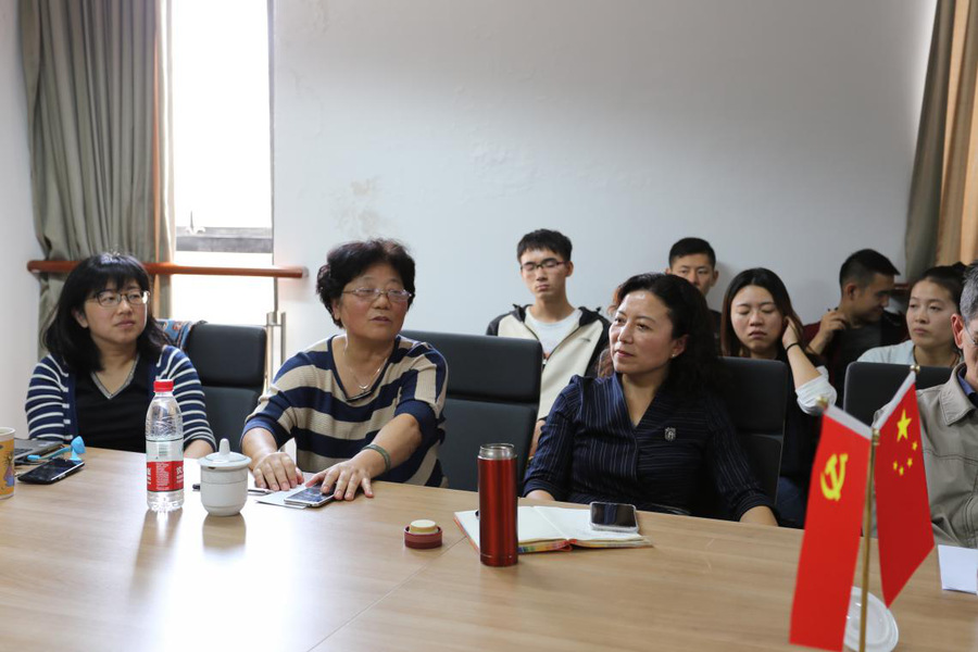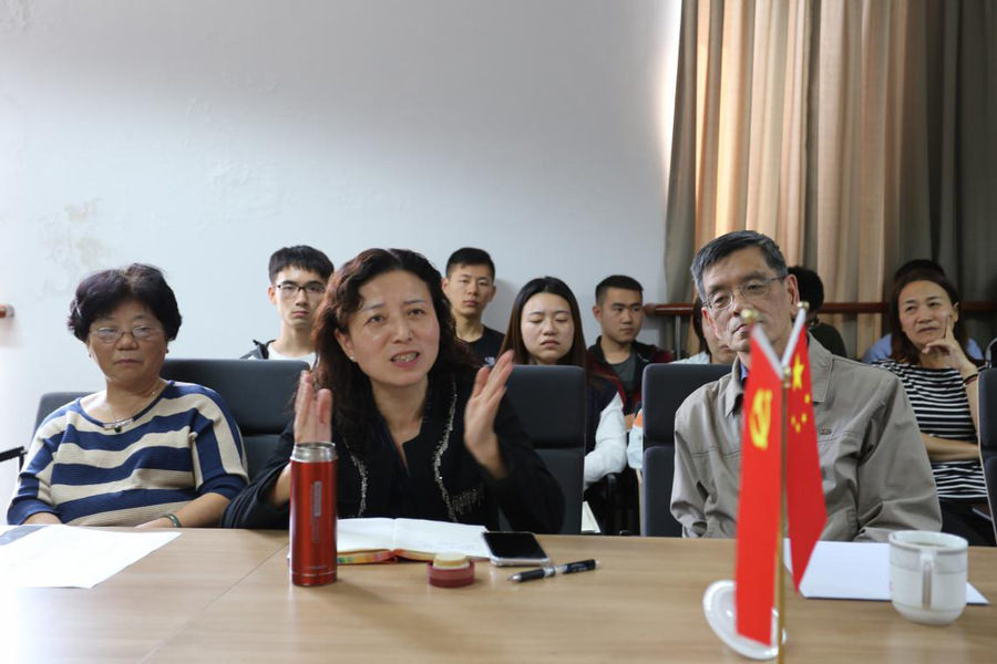 座谈开始,黄蕊老师隆重介绍了老党员于龙生、丁良恩、朱宏雄及陆琴华老师,全体党员以热烈掌声对老师们的到来表示欢迎。随后行政支部全体党员分别介绍了各自的工作岗位和工作内容,学生党员做自我介绍。