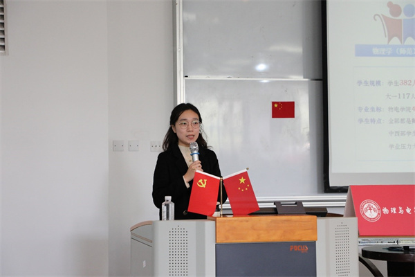 孟宪承书院辅导员艾美伶重点汇报了书院物理师范生的基本情况、“一二课堂”联动情况、重点关注学生名录等方面的内容。
