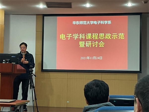 为落实“立德树人”根本任务,全面推进电子科学系课程思政建设,11月24日下午,电子科学系教工党支部与电子科学系高年级研究生党支部牵手共建,在物理楼226报告厅召开课程思政示范研讨会。会议由电子科学系教工党支部书记黄荣主持,物理学系副主任李欣受邀作主题报告。