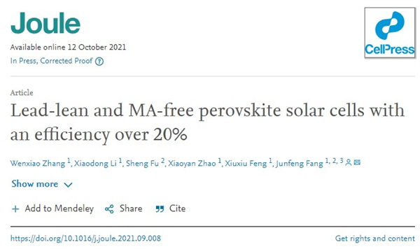 Joule刊发方俊锋课题组在贫铅钙钛矿电池方面取得重要进展