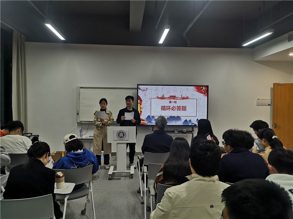 知识竞赛分为循环必答题、机会抢答题,乐趣生死题三个环节,并增设抢答小游戏,令参赛同学在手速、心态和脑力的比拼中,将知识性和趣味性融为一体。