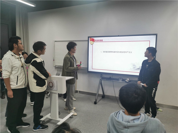 比赛气氛紧张热烈,循环必答环节中,同学们信心满满、从容应对;机会抢答环节中,同学们争先恐后、积极迎战;乐趣生死题环节,大家更是你追我赶、拼劲全力。比赛充分展现了同学们的理论素养和的党史知识储备。经过一多个小时的激烈比拼,比赛最终角逐出了三个优胜团队。
