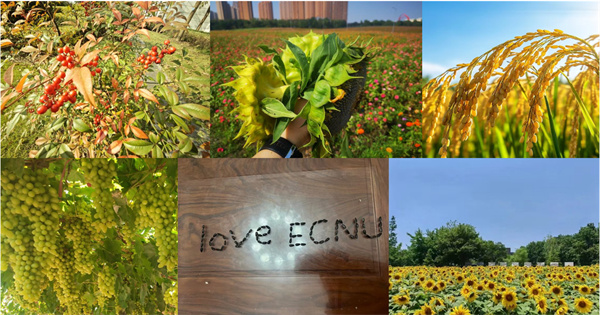 镜头有情,爱在师大。秋天更是一个充满丰收喜悦的季节,稻穗沉沉,瓜果飘香,还有用毕业花结出种子绘成的“Love ECNU”,无不欢喜于大自然的馈赠。