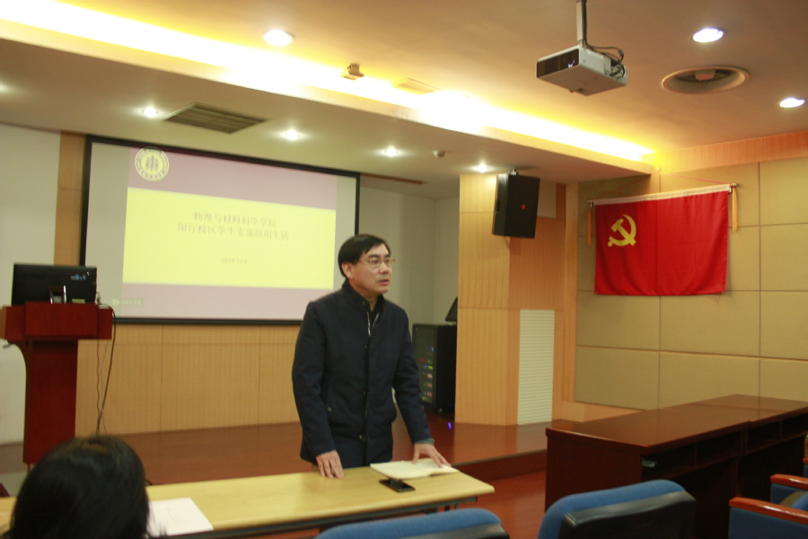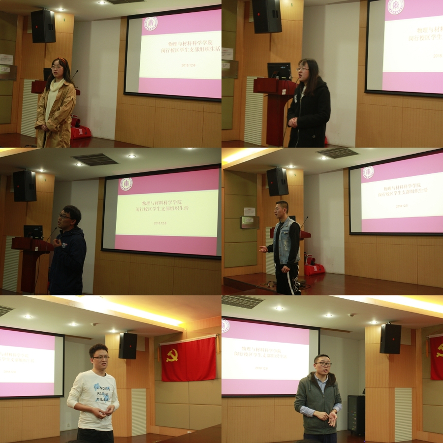 2018年12月6日下午,在学院党委和各学生党支部的组织下,全体闵行校区研究生支部和本科生支部的所有党员,在物理楼226室参加了组织生活会,共同观看了《榜样3》视频,学院党委副书记马红梅、辅导员聂树伟也参加了会议。