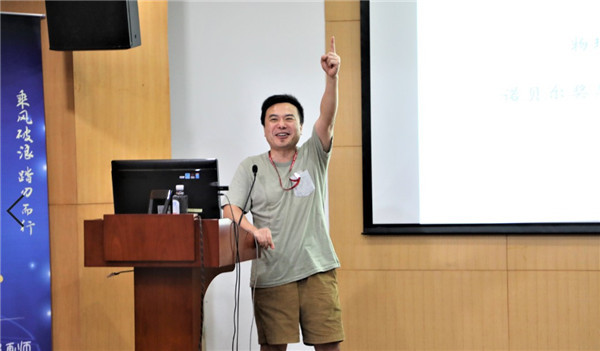 学院院长程亚作题为《今天的物理为什么重要?明天的物理是否仍会重要?》主题报告。他以“今天的物理学为什么重要?”“物理学的价值是什么?”两个问题切入,与在场师生进行交流。青年研究员袁翔表示,学物理的初衷是更好的了解这个世界,通过物理学的研究造福人类。