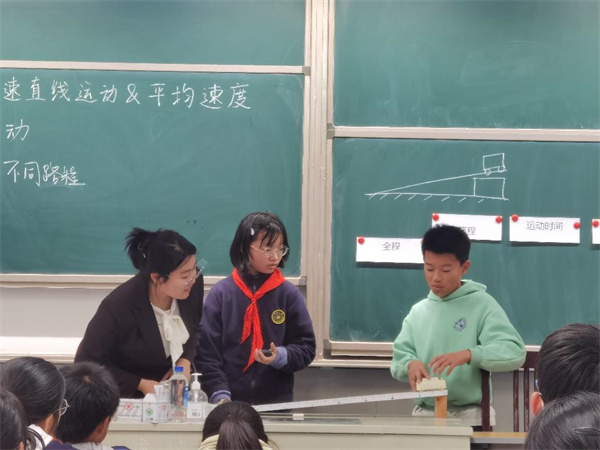 选手韩婷板书工整、语言严谨、教态亲和。她精心设计教学环节,巧妙设置课堂互动,引导学生自主总结变速直线运动的特点,通过实验设计、操作与记录,提升学生动手能力。