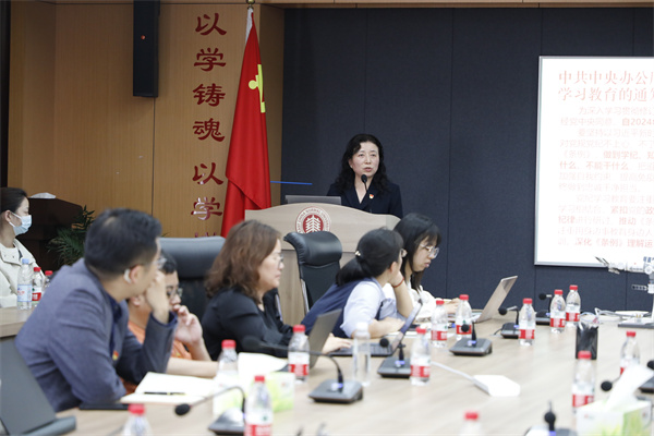 李恺做党纪学习教育工作推进部署,对学院党委党纪学习教育工作方案进行全面解读,明确了党支部高质量开展党纪学习教育的目标和要求。李恺强调,各基层党支部要以全党开展党纪学习教育为契机,坚持党性、党风、党纪一起抓,把党纪学习教育与党员教育管理相结合,推动《条例》入脑入心,把增强党性、严守纪律、砥砺作风融入日常、化为习惯。