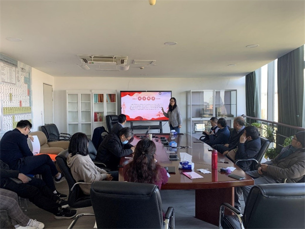 党支部副书记张媛媛从会议内容、为何要总结党的百年奋斗重大成就和历史经验、中国共产党百年奋斗历程、中国共产党百年奋斗的历史意义及宝贵经验等维度带领支部党员系统全面地学习领会十九届六中全会精神。