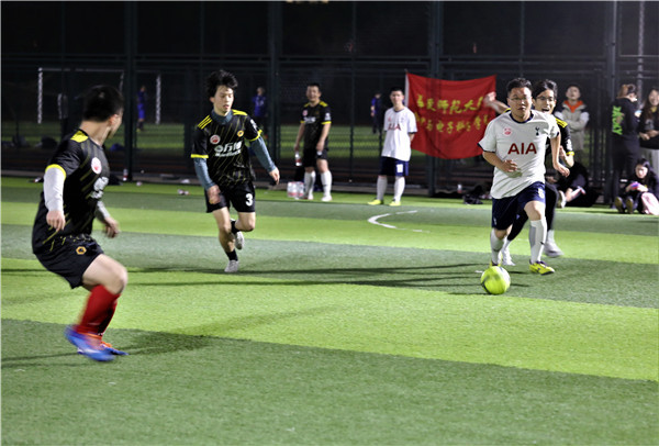10月30日晚,师生足球友谊赛在闵行校区西操场举行。比赛采取师生混编组队对抗的形式,由学院院长程亚领衔的“热刺队”对阵彭晖老师领衔“狼队队”。