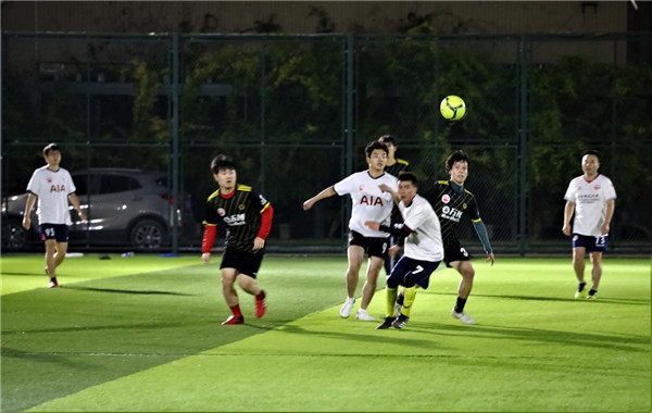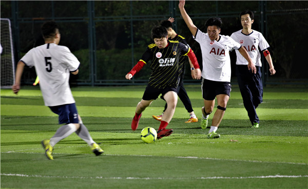 比赛开始,在观众的助威声中,双方迅速进入状态,展开激烈对攻,“热刺队”右边路陈蔚和彭俊松接连打出精彩配合,“狼队”后卫丁匀皓、唐明多次补防,稳住局势。