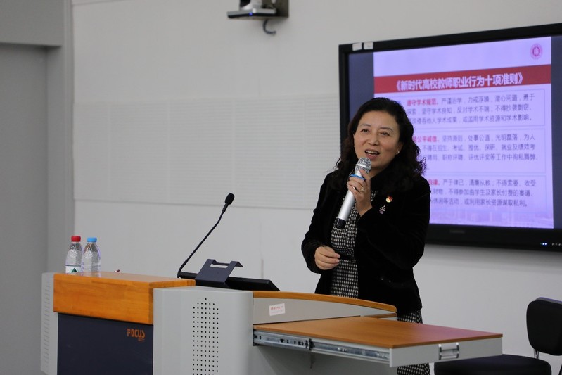 学院党委书记李恺对教育部《新时代高校教师职业行为十项准则》《华东师范大学预防与处理师德失范行为实施办法(试行)》《华东师范大学教师校外兼职管理办法(试行)》等教师工作相关文件进行重点解读。她指出,“树人先树德,育人先育己”,希望学院教师从为党育人、为国育才的高度来认识加强自身建设的重要性,主动落实相关文件精神,明确师德底线。后续学院将持续加强师德师风建设,促进学院教师进一步增强育人的责任感、使命感、荣誉感。