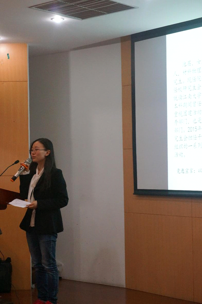 主持人聂啸宇介绍领导嘉宾后,马红梅老师代表院党委对会议的召开表示祝贺,在对院第三届研究生会2015-2016年研究生工作予以肯定的同时,对院新一届研究生会也提出殷切希望,希望研究生会在新一届主席团的带领下,继承传统,开拓创新,力争上游。聂树伟老 师和王元力老师肯定研究生会工作的同时也分别就研究生会开展工作的重点、硕本如何联手打造院系品牌活动提出了自己的意见。与会嘉宾致辞完毕,物理与材料科 学学院第三届研究生会主席韩丹代表第三届研究生会作了本学年工作报告,报告分别从推进学术活动,建设学院特色文化,加强与院学生会的合作三个方面对一年的工作进行了总结。