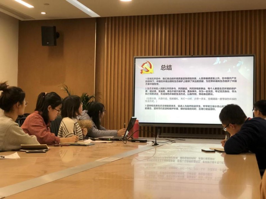 组织委员陈天琦就《决定》中坚持和完善生态文明制度体系,促进人与自然和谐共生一条进行了详细地解读。陈天琦结合一系列真实数据讲述了近年来我国在水源地治理、空气治理到土壤治理生态环境等方面取得的成就。她谈到,党的十八大以来,生态文明建设被纳入中国特色社会主义事业“五位一体”总体布局,对生态文明建设的思想认识程度之深、污染治理力度之大、制度出台频度之密、监管执法尺度之严、环境质量改善速度之快,前所未有。制度是基础,制度是法宝,严密的制度体系更能助力我们建设美丽中国。