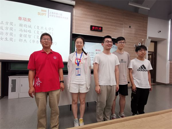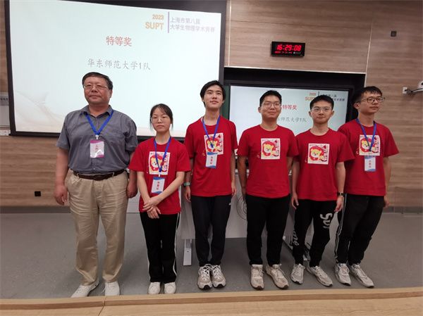 7月8-9日,第八届上海市大学生物理学术竞赛(Shanghai Undergraduate Physicists’Tournament,简称SUPT)在同济大学举行。由我院12名本科生组成华东师范大学两支代表队,经过四轮紧张激烈的对决,取得优异成绩,1队斩获本次比赛的唯一特等奖,2队获二等奖,郐杰同学获得本次上海赛“最佳女生个人奖”。这是我校继2019年以来(2020年、2022年因疫情停办),第三次获得特等奖和最佳女生个人奖。