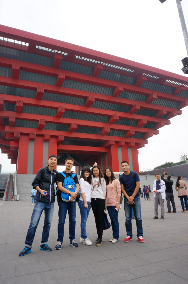 同学们在队长的带领下,先参观了梅赛德斯奔驰文化中心,行走在夹层处,江风习习吹来,让人略感秋日的凉意。中国第二大拱桥 “卢浦大桥”横跨江面,船只来来往往于江上,江对面高楼林立,隐约还能见到明珠瑰丽的身影,这无时无刻不张显着魔都的忙碌与现代化。随后又参观了中华 艺术宫,时值该馆“抗战胜利七十周年”展览,各种油画雕塑作品引得大家驻足观赏。之后打道新天地地铁站,参观了中共一大会址,重温了中国共产党建党历程。