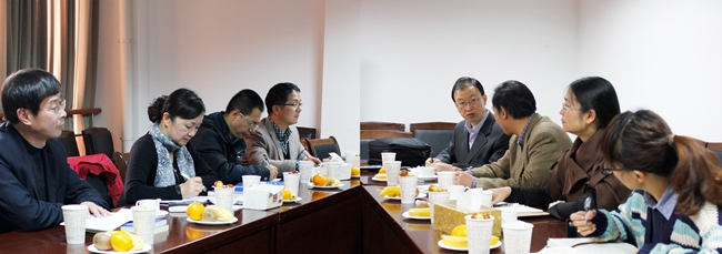 会上,东华理工大学刘光萍老师介绍了东华理工大学理学院的学科设置、办学规模、学生考研等方面情况。我系马学鸣老师对客人的到来表示欢迎, 并介绍了我系教学、科研、学生工作等情况。徐敏老师就我系研究生培养工作进行了介绍。潘苏东老师就我系教育硕士培养工作进行了介绍。东华理工大学的老师们 对我系的教育硕士培养等工作给予了高度评价,并欢迎我系优秀博士生到东华理工大学工作。双方还就师资队伍年龄结构、人才引进等方面进行了深入交流。通过交 流,双方收获颇多。