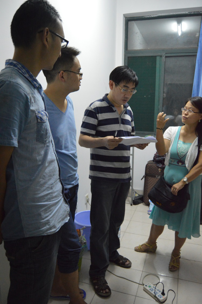 晚6:30,物理学系副主任王向晖老师和新生辅导员聂树伟老师依次前往研究生公寓各宿舍关心慰问新生,就生活、学术等问题和同学们展开了热 切的交流。在交流中,老师们特别询问了同学们饮食是否习惯,蚊帐、床铺是否安置妥当等。老师对同学们生活细节的关怀让新生倍感温暖,大家很快就不再拘谨, 和老师们展开热烈的交流,出于对即将到来科研生活的期待,同学们按捺不住内心的激动和好奇,急切地向老师询问和学术有关的诸多问题:我现在应该要看什么 书?什么时候可以进实验室……同学们高涨的情绪让老师们也受到了感染,并给同学们提出了中肯的建议。