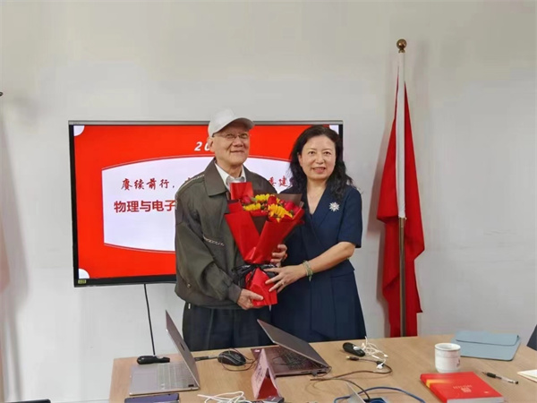 长期奋战在物理与电子科学学院关工委,84岁高龄的于龙生老师分享了自己参加关工委工作的经历和心得。他讲到,学院关工委成立五年以来,最大的感受,一是爱生敬业定位准,坚持以学生为中心,深入学生群体,了解其需求和困惑;二是立德树人方向明,既要做“经师”也要做“人师”,引导学生树立正确的世界观、人生观、价值观,鼓励学生在实现个人发展的同时投身强国建设和民族复兴的伟大事业;三是党建引领抓根本,坚持以党建带团建,充分发挥老党员的先锋模范作用。