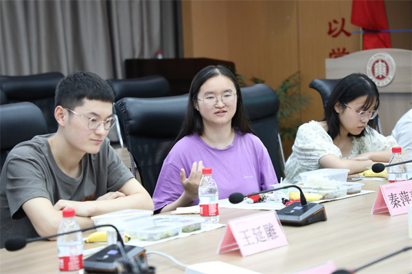 围绕本学期修读的课程,尤其是《计算物理》《固体物理》《热力学与统计物理》等多门核心主干课程,杨丽蓉、秦萍萍等畅谈学习方法和听课感受,对教学内容安排、教学方法、考核方式提出建议和意见。师生围绕“课程难度是否适宜”“如何提升同学对知识点的掌握程度”等进行互动交流。