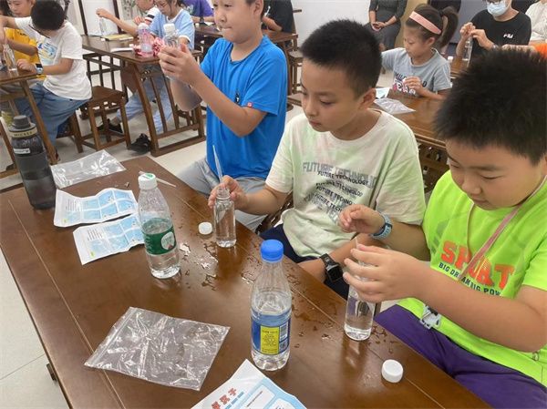 “追光”科普宣讲团带来了“魔术中的拓扑知识”“马蹄锁”“麻绳逃脱”“浮沉子”等4个科普实验。学生们2人一组,每组配发一套实验仪器,师生志愿者通过实验演示,启发学生从理性思维的角度,加深对物理原理知识的理解。参与活动的同学纷纷表示,小实验奇妙有趣,希望今后能有更多机会动手实验,深入探究实验现象和物理原理。