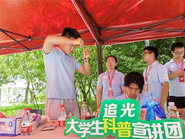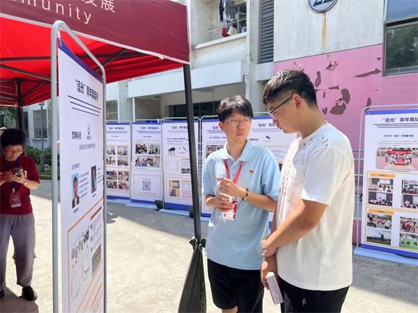 为推进学校“一站式”学生社区建设,学校教务处党支部、学院在剑川路22号楼吹响“追光青年集结号”。中国国际“互联网+”大学生创新创业大赛全国金奖、教育部拔尖计划2.0“提问与猜想”特等奖、中国大学生物理学术竞赛特等奖等获奖学子,在22号楼为新生启蒙“双创之路”;同时“追光”科普宣讲团演示各类物理实验,带领新生领略“科普之美”。学校副校长戴立益、校党委副书记杨昌利对“一站式”学生社区建设工作进行现场指导。