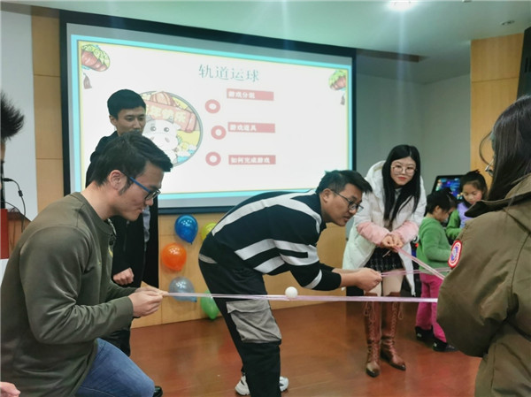 伴随着优美的旋律,参加联欢的师生自选曲目,纷纷上台,或单唱或对唱,博得阵阵喝彩,中间还穿插了“轨道运球”等游戏环节,留校学生7人一组,用两根绳子制造轨道,将乒乓球在3个轨道中运输。联欢会上,学院不仅为每位留校同学准备了一份新春大礼包,还在现场分别抽出了一二三等奖和特等奖,为同学们带来了幸运和快乐。