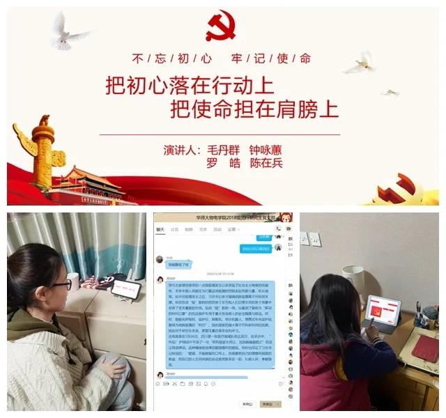 为进一步学习贯彻落实习近平总书记关于新冠疫情防控的重要指示精神,深入推动学院广大师生党员牢记初心使命、学习先进典型,以更加精准有力的措施持续巩固疫情防控成果,以更加奋发有为的状态推动学院教育教学工作顺利开展,物理与电子科学学院党委积极组织学院师生党员学在前、思在先、行在实,指导各支部结合实际开展“把初心落在行动上、把使命担在肩膀上”线上主题党日活动。