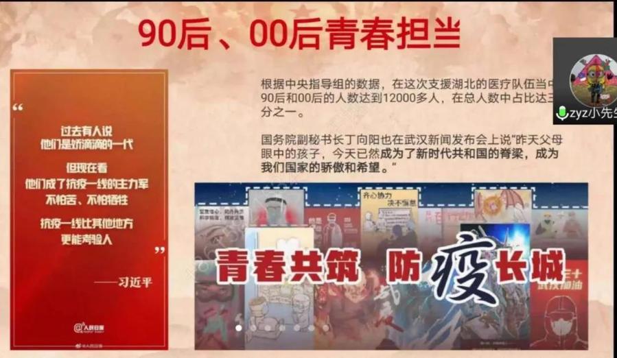 在新冠肺炎疫情防控斗争中,奋战在抗疫一线的“最美逆行者”激发了学生党员的学习热情和积极讨论,各学生党支部以理论学习引导青年,以典型人物带动青年,组织学生党员学习疫情防控相关文件精神和抗疫英雄事迹,探讨青年责任。