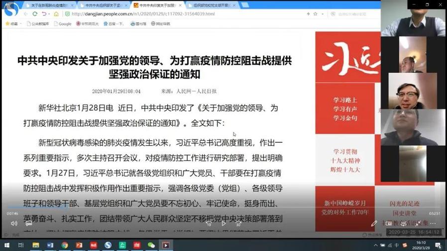 精密光谱国家重点实验室2017级研究生党支部组织支部党员学习观看复旦大学张维为教授“全球抗疫中的中国担当”的主题演讲,系统了解中国抗击疫情模式的历史传承和当前经验,并组织党员进行交流讨论。