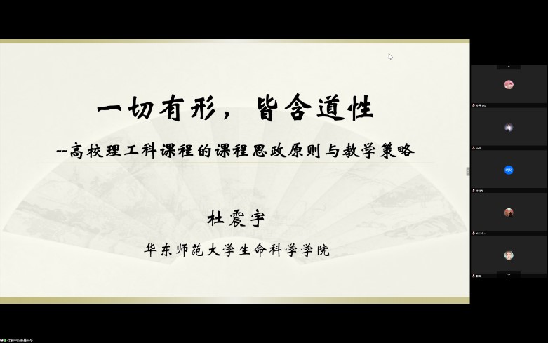 杜教授从课程思政的内涵及理工科教师开展课程思政常有的困惑讲起,围绕“课程思政是否会冲击理工科的专业知识体系?”“课程思政内容如何与专业知识体系兼容乃至融合?”“理工科课程中实施课程思政教学的原则和具体教学策略是什么?”等五个方面的常见误解逐一进行剖析,并基于理工科课程的专业特征与课程思政的统一性指出,“在理工科教学中体现的思政教育才是理工科的课程思政”。