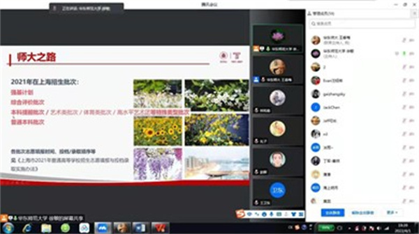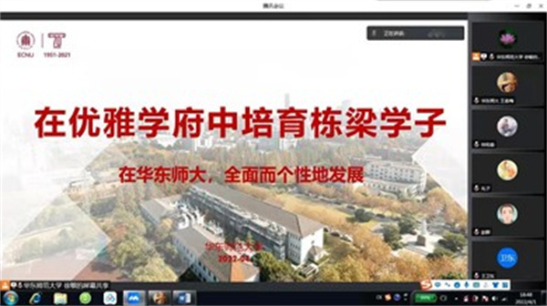徐敏详细介绍了华东师范大学整体发展和人才培养情况,解读了上海市招生政策与我校近几年的招生情况。徐敏提到,我校招生类型丰富,除了高考统招外,还有强基计划、综合评价、高水平艺术团、高水平运动队等多种招考形式,希望有特长的考生把握机会,通过多渠道报考我校,争取更多机会,也期待同学们在特殊时期战胜困难,定心学习,考取理想的大学。
