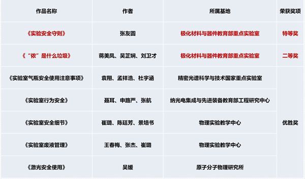 极化材料与器件教育部重点实验室张友圆同学的作品《实验安全守则》荣获全校唯一特等奖。此外,学院荣获学校优秀组织奖。