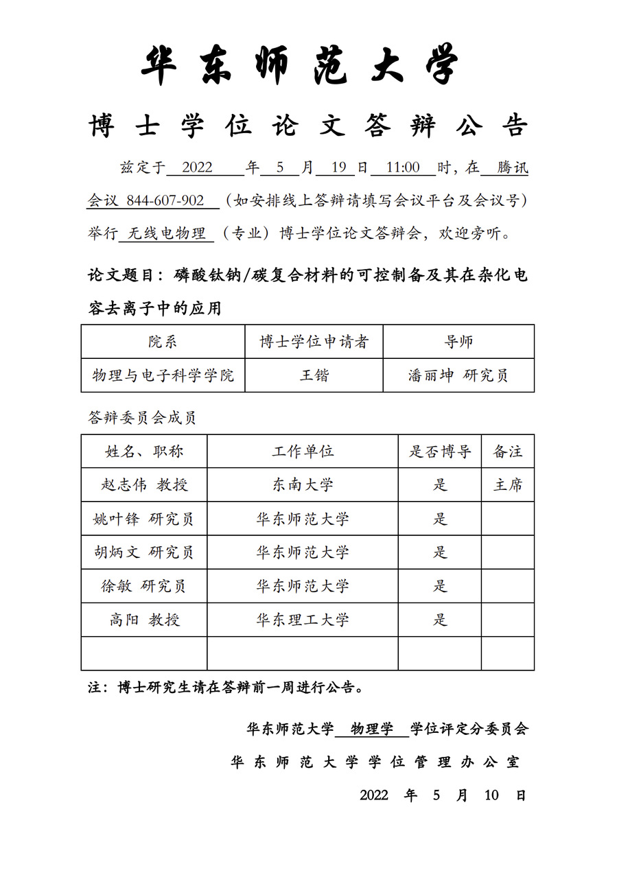 华东师范大学 博士学位论文答辩公告-王锴