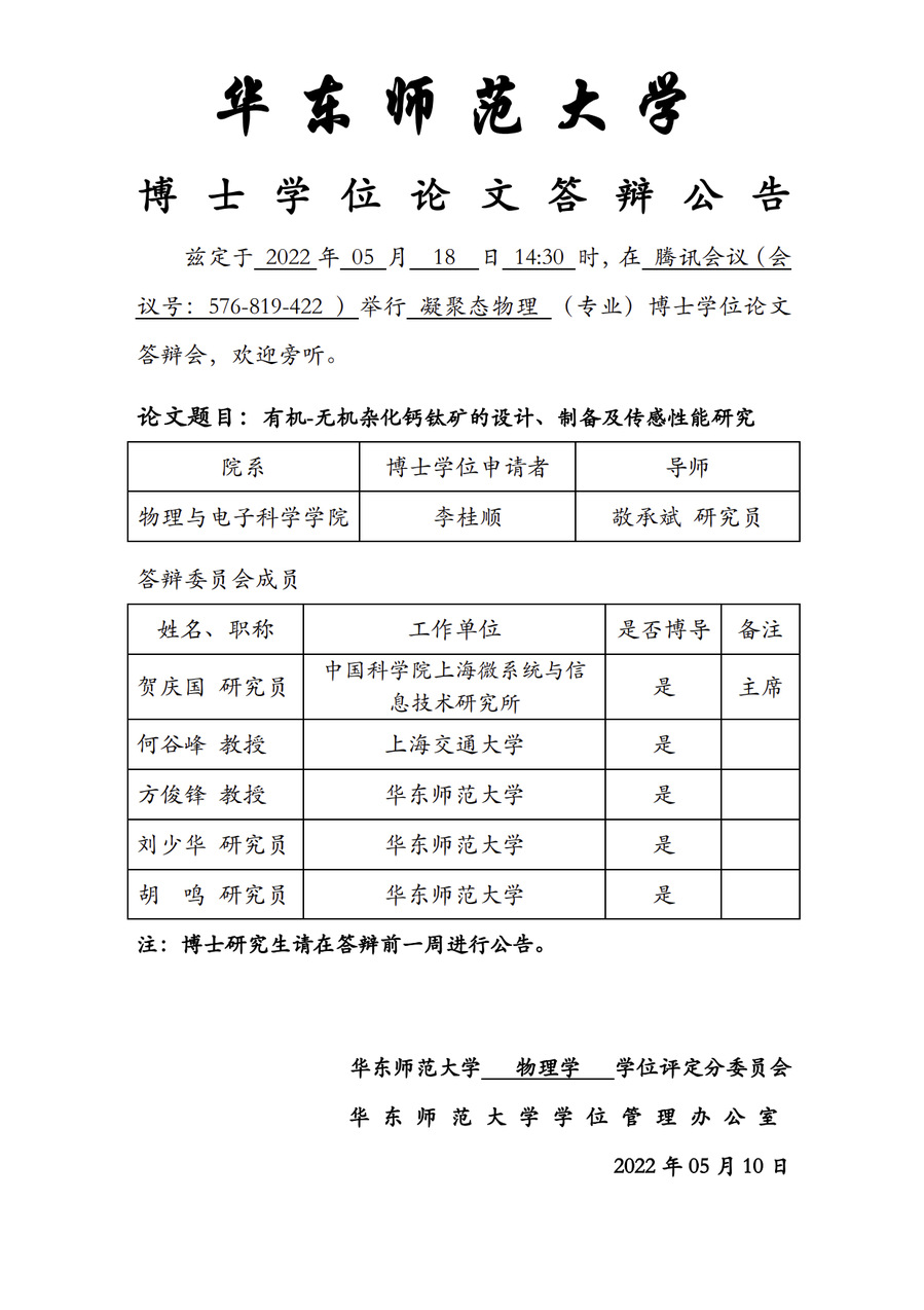 华东师范大学 博士学位论文答辩公告-李桂顺