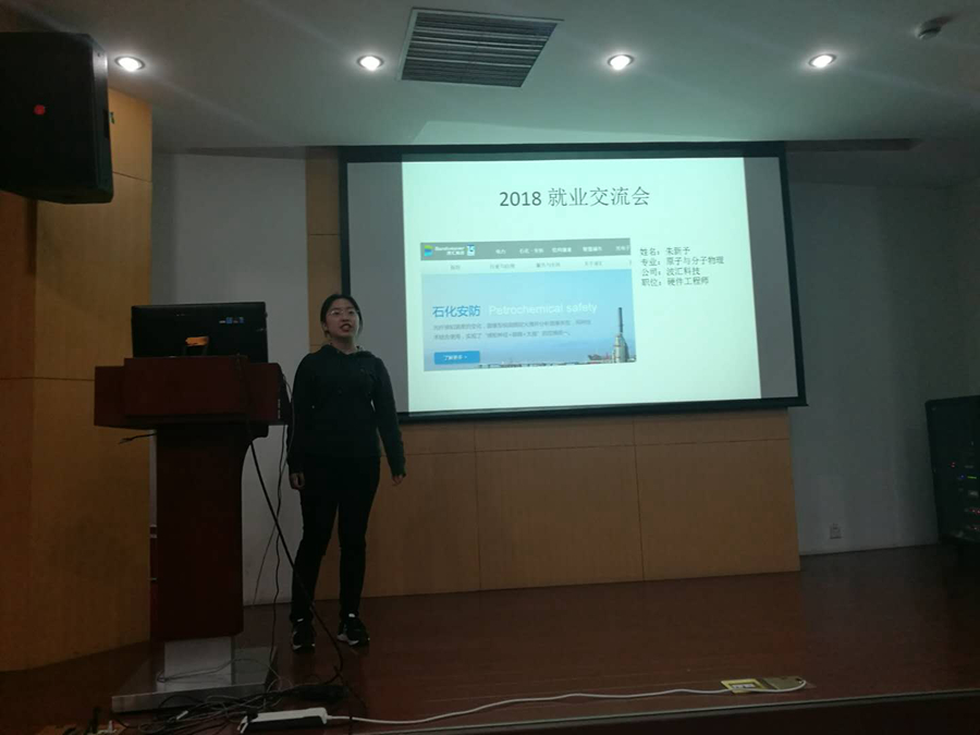 2018年4月25日下午13:00,在物理楼226报告厅成功举办了物理与材料科学学院研究生就业经验交流会。此次活动邀请了五位15级在就业方面有代表性的研究生毕业生张加洋、王嫣、韩海平、毛俊、朱新予与同学们面对面交流,分享了他们在求职过程中的心得体会和宝贵经验。2016级全体研究生、2017级的部分研究生参加了此次交流会。交流会由辅导员聂树伟老师主持。
