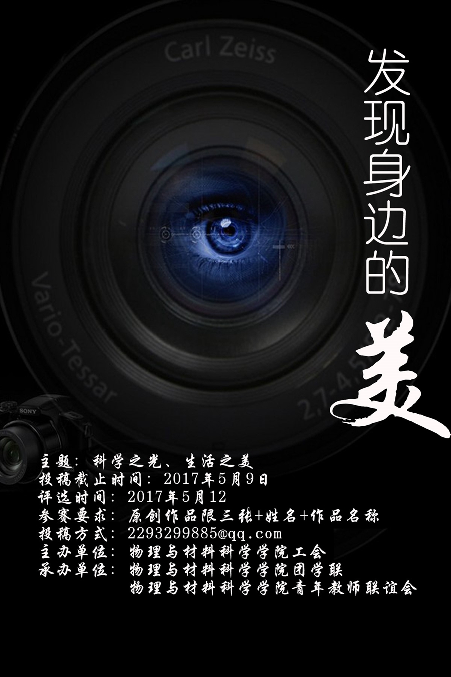 去年青年教师联谊会主办的“金秋之美”首届物理与材料科学学院教职工摄影展,获得了全院老师的广泛参与,并激发了大家手机摄影的兴趣。本学期决定举办“发现师大之美、生活之美”的摄影比赛。又由于2017年5月12日是全校的校园主题活动日,刚好我们要举办的摄影活动与这一次的主题不谋而合,于是会上决定将本次活动与团学联一起搞,主题定为“科学之光、师大之美、生活之美”。