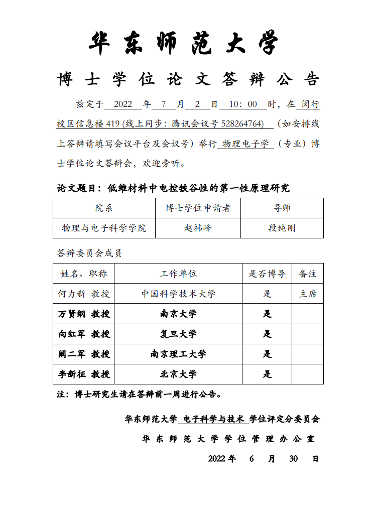 华东师范大学 博士学位论文答辩公告-赵祎峰