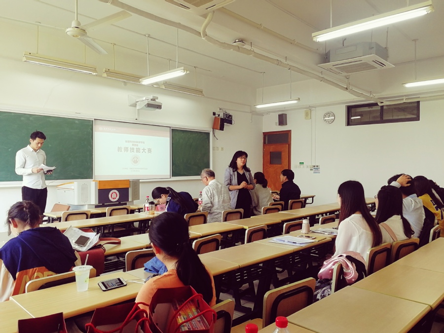 比赛以模拟课堂的方式进行,每位选手限时10分钟,之后是简短回答评委的提问。比赛井然有序地进行,各位参赛选手都展示出了各自的教学特长和个人风采。评委老师们认真聆听了参赛选手的精彩内容,给出了中肯的建议。因为大多同学都是第一次模拟课堂,存在经验不足的问题,评委老师们也从内容设置和书面表达等方面对同学们进行指导,帮助同学们理清问题,为以后更好地完成教学任务积攒经验。