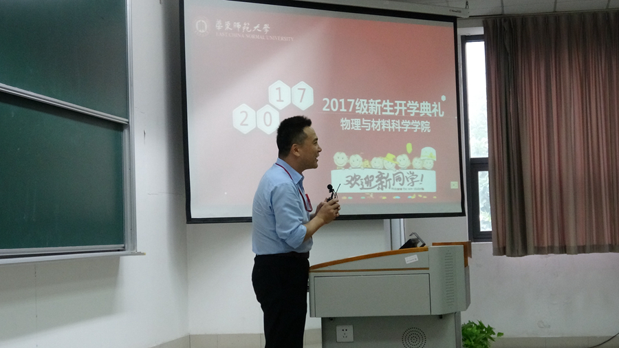 学院院长程亚首先代表学院向全体2017级新生表示衷心的祝贺与欢迎,紧接着他以交互式的形式和大家交流起来,殷切问候了来自最远地区的新疆同学以及年龄最小的00后同学,并鼓励大家向着自己的目标进发。