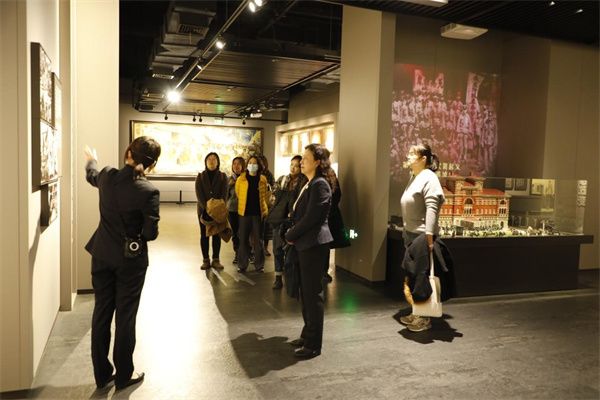 祭扫仪式后,全体党员参观龙华烈士纪念馆。在讲解员的引导下,相继参观馆内序厅及“信仰的召唤”“使命的执着”等主题展厅。通过图文实物和高科技多媒体技术,回顾革命先烈为国为民、前赴后继、视死如归的事迹,切身感受到革命先辈们矢志不渝的精神追求。场馆内,全体党员面向党旗、紧握右拳,学院党委书记李恺领誓,齐声重温入党誓词。