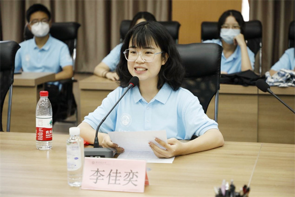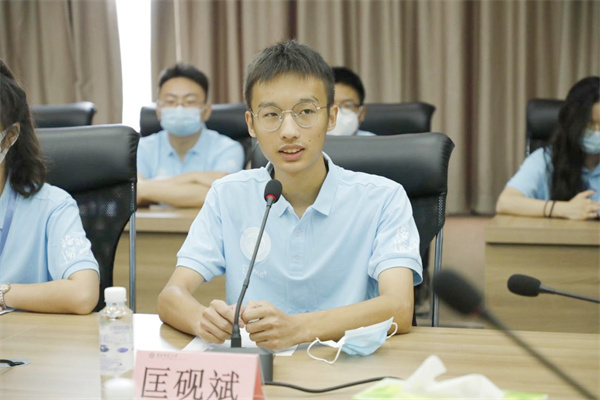 “科研是一个由浅入深的过程。在这一年的备赛里,我结识了很多志同道合的好友,遇到了对我有莫大帮助的恩师,他们是我这一年里最大的收获。”老生代表、2021级物理学强基班本科生匡砚斌结合自身过去一年的科研、竞赛经历,分享了在这一过程中个人专业素养的提升经历和体会,鼓励2022级本科生珍惜时间、躬身实践,从实践出真知。