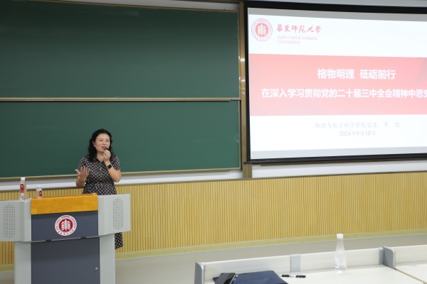 李恺面向全体新生党员上党课。她欢迎95名党员加入物理与电子科学学院党委,并要求党员铸魂铸心、增强党性,在理解华东师大的红色文脉、理解学院的红色文脉的基础上,格物明理、砥砺奋进。李恺以学院、学科发展史中的奋斗印记为引,带领新生党员重温了学院、学科发展历史,并以乔登江、袁运开、夏慧荣、孙沩、马龙生等学院学科发展史中的榜样人物勉励青年学生党员,弘扬科学家精神、教育家精神,秉承师大物理人忠诚爱国的家国情怀、自主独立的学习习惯、理性务实的专业素养、严谨求真的学术道德、辩证反思的创新精神、格物致知的智慧思想,开启师大新征程,以扎实的学问支撑卓越科研创新,以高水平成果助力一流学科建设。