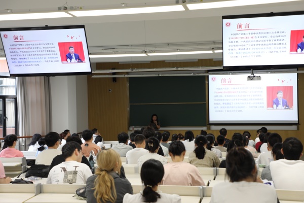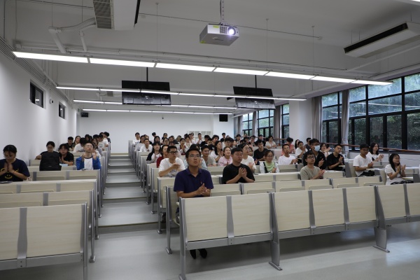 青春铸魂,党旗引领。9月18日下午,物理与电子科学学院党委于四教110室组织开展新生党员教育,学院党委书记李恺做《格物明理 砥砺前行——在深入学习贯彻党的二十届三中全会精神中思变致远》主题报告。95名新生党员参会,院党委书记助理、专职辅导员王元力,专职辅导员聂树伟、杨欣怡,学院党委专职组织员赵荣青参加。
