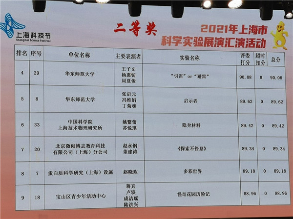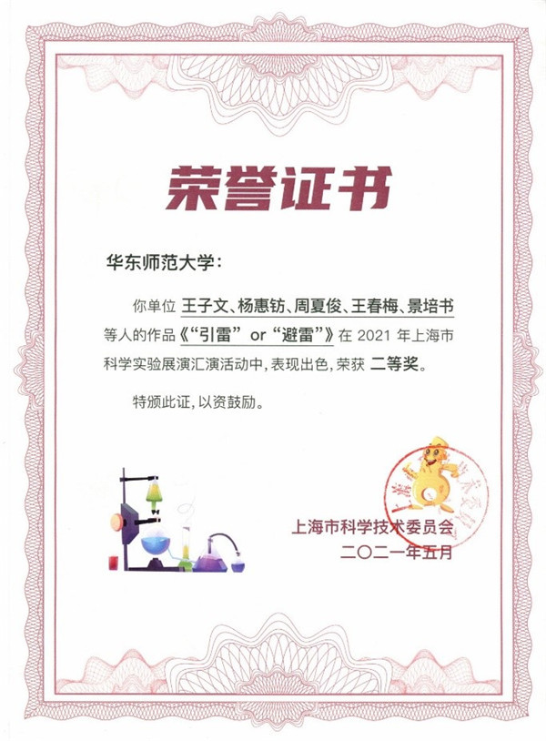 我院本科生获2021年上海市科学实验展演汇演活动二等奖