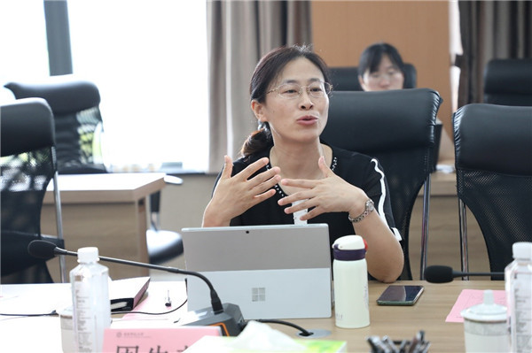 学院物理系副系主任尹亚玲副教授作“大学物理实验慕课课程建设”主题报告。她从当下大学物理实验慕课建设成果、建设措施、高校应用情况、学生评价、未来规划等方面作详细介绍,她谈到,当下慕课注重专业价值理念与课程思政融合,希望以后建立更丰富的教学资源,增强课程的辐射效应。