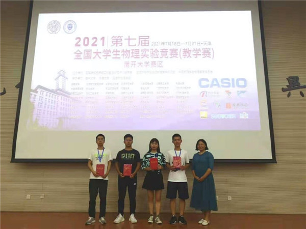 2018级本科生郭新敬(右4)、黄鼎(右3)获综合性实验题目三等奖