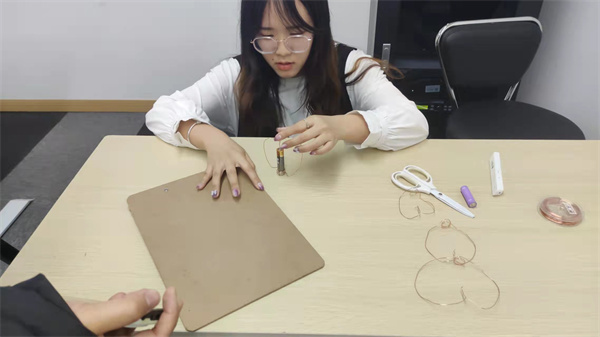 在课堂上,王媛回顾了能量守恒定律和机械能守恒定律,通过“旋转铜线圈”的视频,细致讲解了自制简易电动机的构成原理,之后,王媛和童欣通过视频教学,引导同学们一步步制作简易电动机,通过问答形式,逐步讲解实验要点难点。完成实验后,王媛和童欣针对部分同学实验失败的情况,进行了详细的指导。同学们通过线上指导、线下动手的方式,对简易电动机实验的原理、操作有了深入的了解。