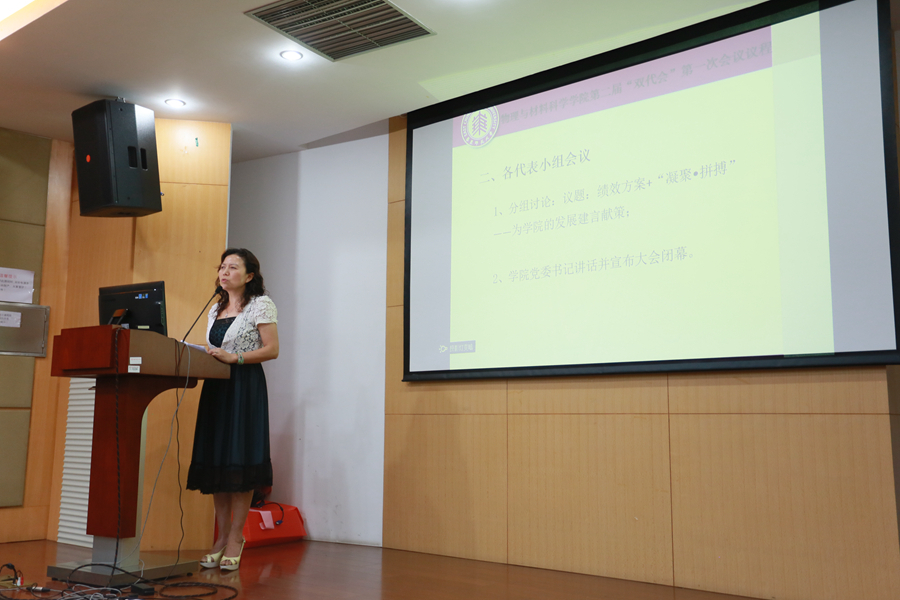 2018年7月4日下午,物理与材料科学学院第二届工会换届选举大会在物理楼226报告厅召开,学院教代会正式教职工代表及列席代表参加了会议。院党委书记李恺、院长程亚、副院长周先荣、院党委副书记黄岚兰等学院领导出席会议。大会由学院党委副书记马红梅主持。