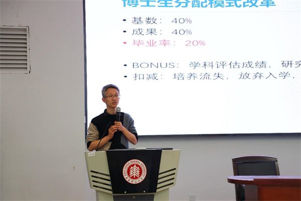 学院副院长胡炳文通报研究生招生、教学情况,重点介绍博士生分配模式改革的方案和细节,对博士学位论文5年抽检的要求作出详细解释。