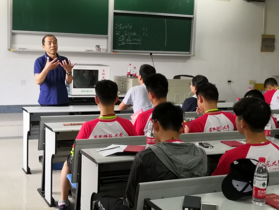 活动期间,实验中心为营员们准备了一系列融科学性与趣味性于一体的物理学科探究实践活动。整个活动在7月10日上午的专家讲座中拉开了序幕,讲座由物理与电子科学学院物理学系主任、物理实验教学中心主任赵振杰教授主持。华东师范大学理论物理研究所所长刘宗华教授向营员作了一个题名为“神奇的大脑”的前沿讲座。讲座精彩纷呈,深深地吸引了每一位营员,营员们纷纷与刘老师进行互动。刘老师在会上还像优秀营员赠送书籍,并向夏令营营员寄予希望。